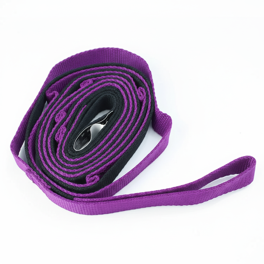 Mejora tu flexibilidad, movilidad y rango de movimiento con esta cinta de yoga segmentada o yoga strap, ideal para yoga, pilates, rehabilitación y calentamiento deportivo.